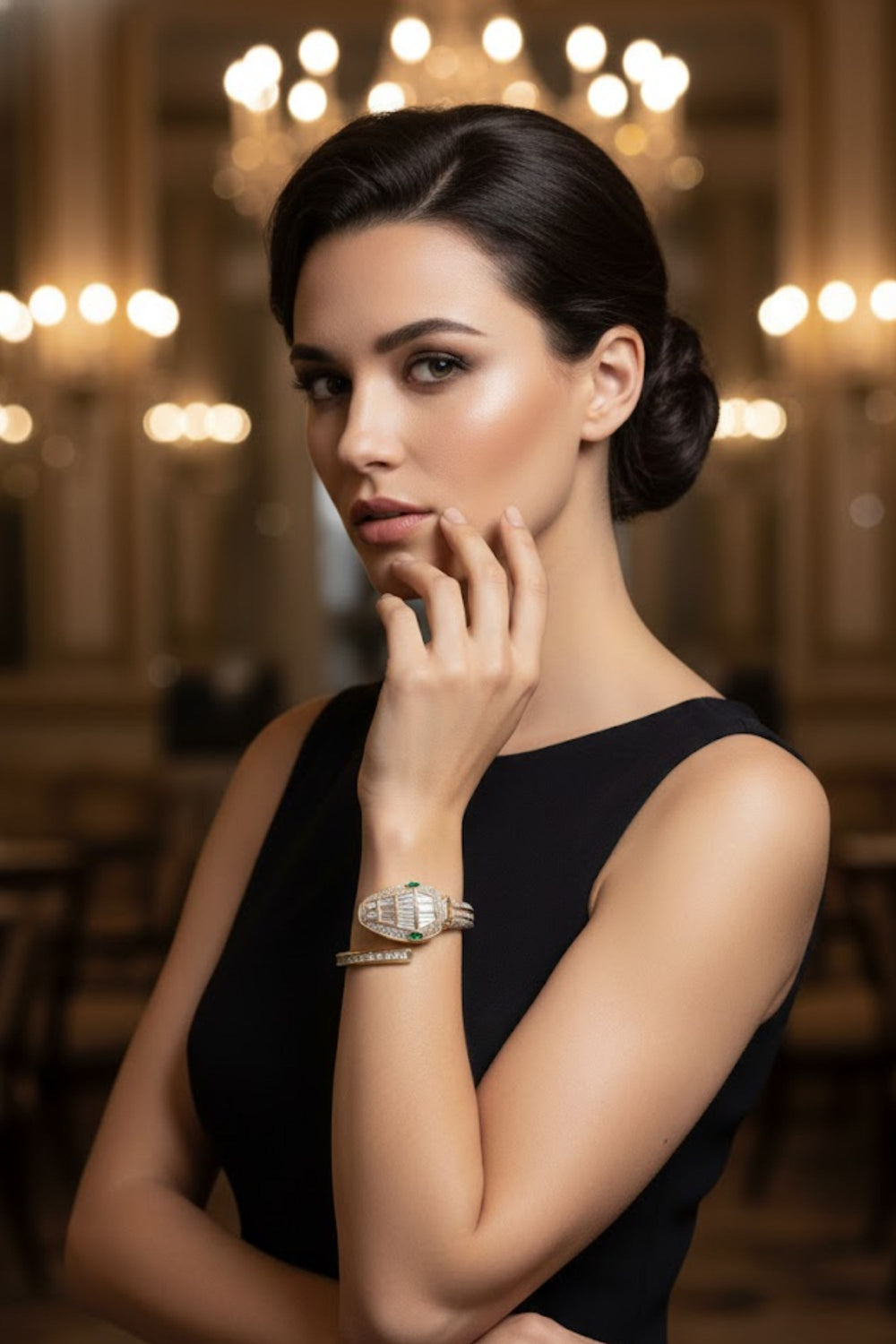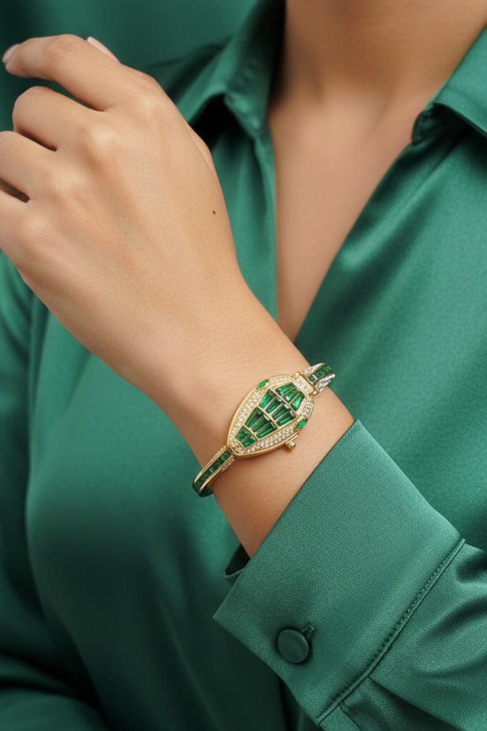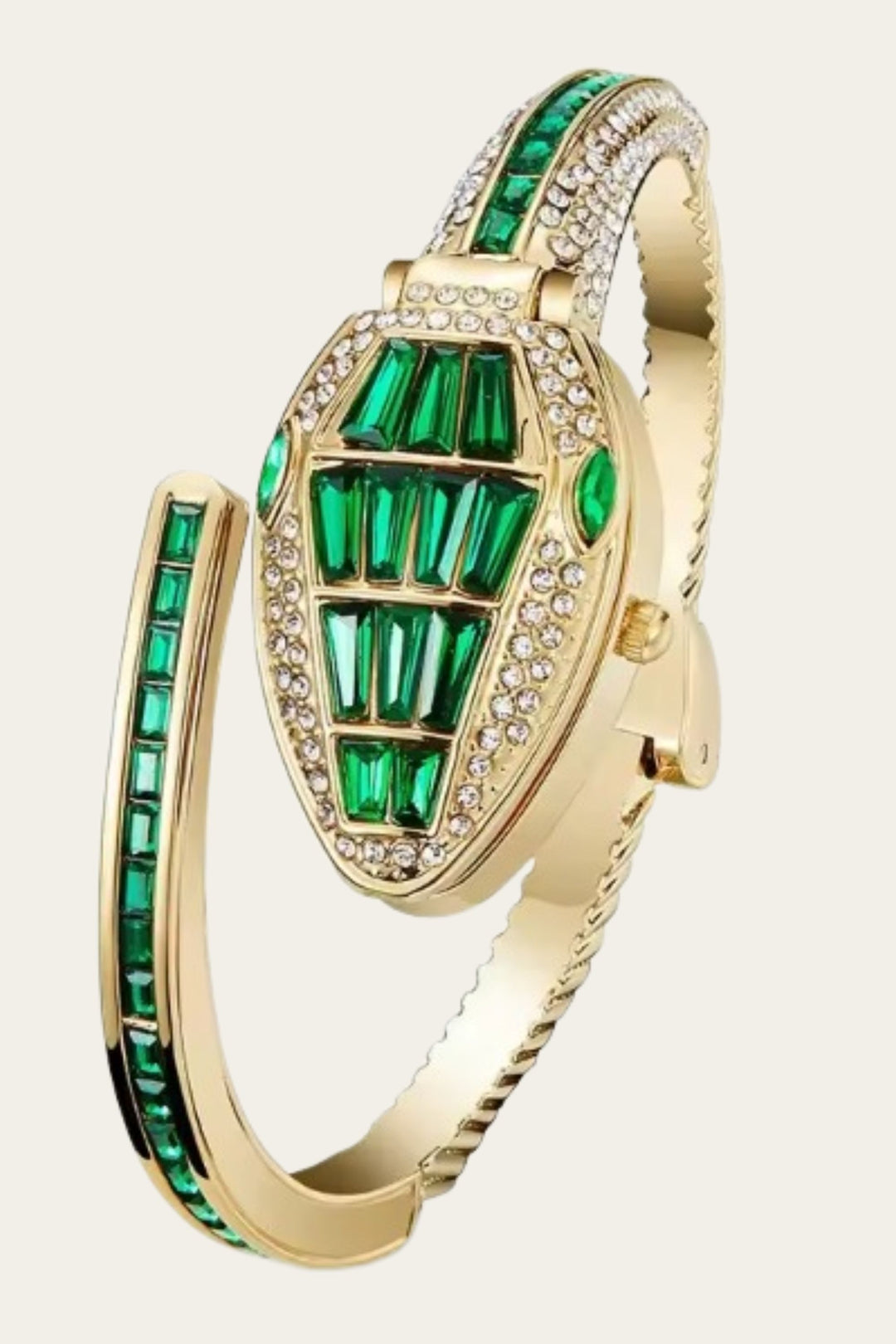 Serpentine Luxe | Rose Gold Green Watch Bracelet