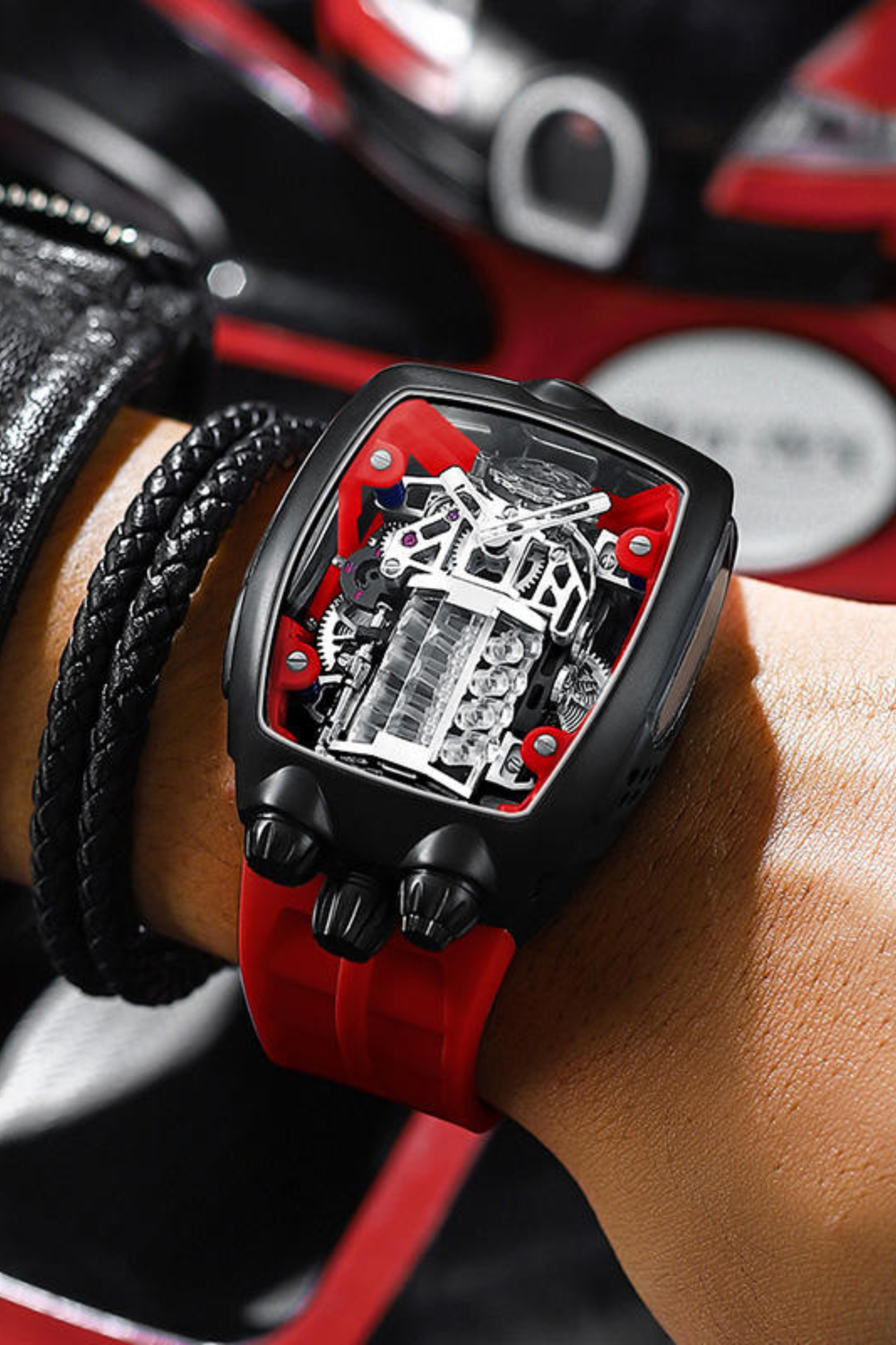 Viper Engine Red with Black Dial | Tonneau Skeleton Automatic Engine Edition