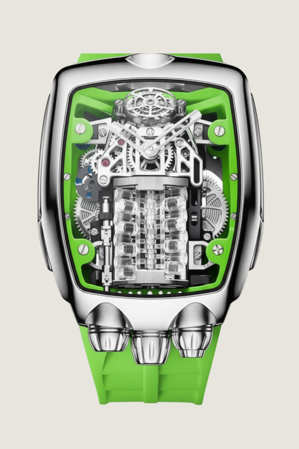 Viper Engine Neon Green with Silver Dial | Tonneau Skeleton Automatic Engine Edition