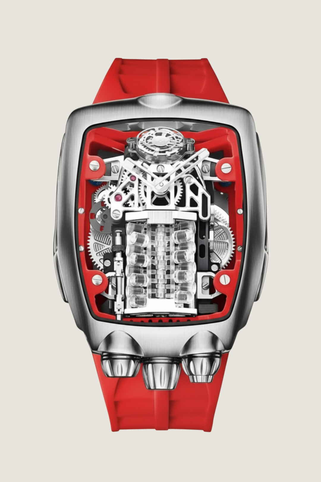 Viper Engine Red with Silver Dial | Tonneau Skeleton Automatic Engine Edition