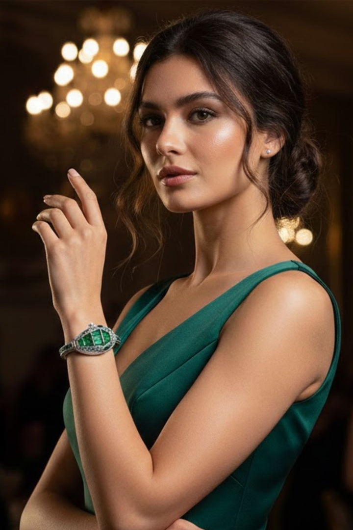 Design Theme Emerald Crystal Shield / Contemporary Serpentine Cuff