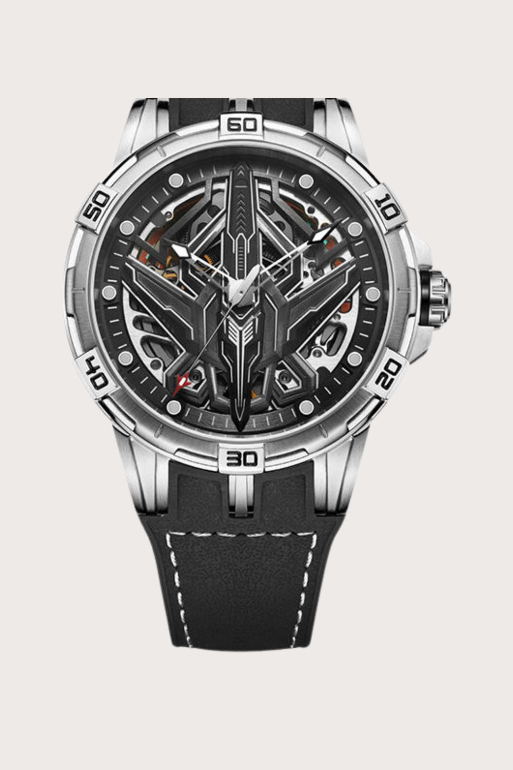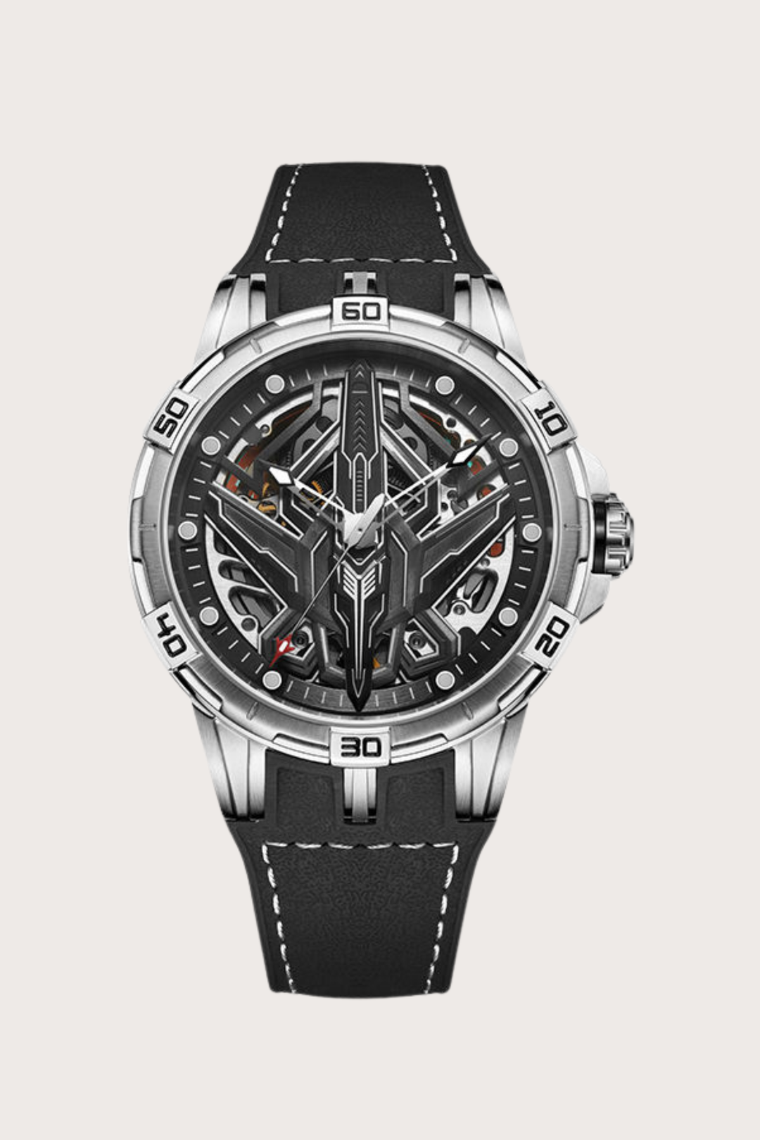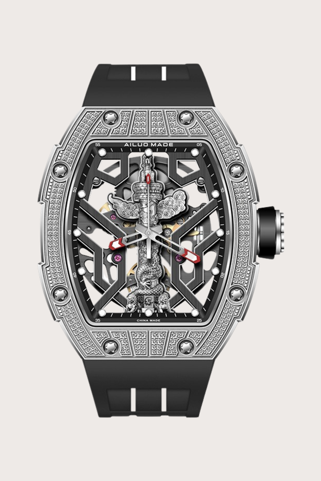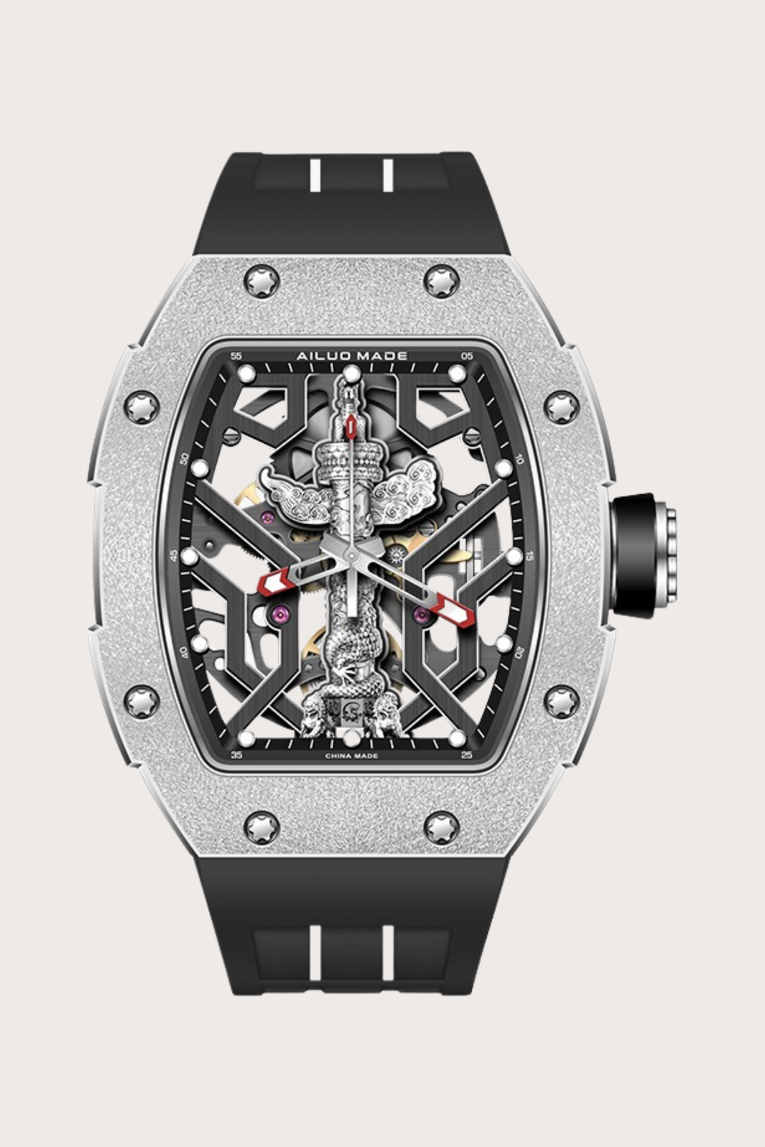Ailuo Made 6629 Series Fashion Trend Full Hollow Automatic Silver Mechanical Men's Watch