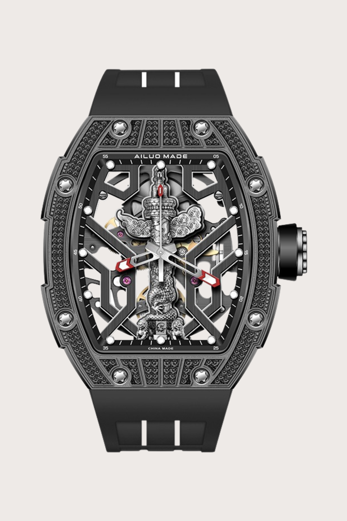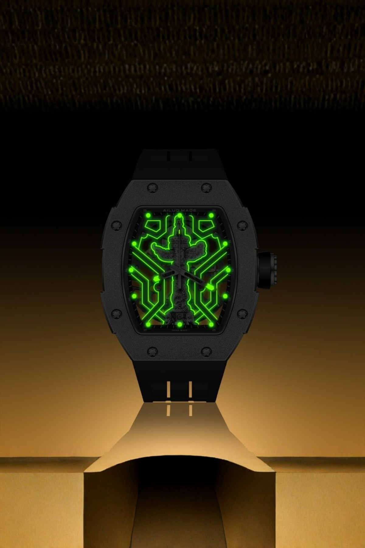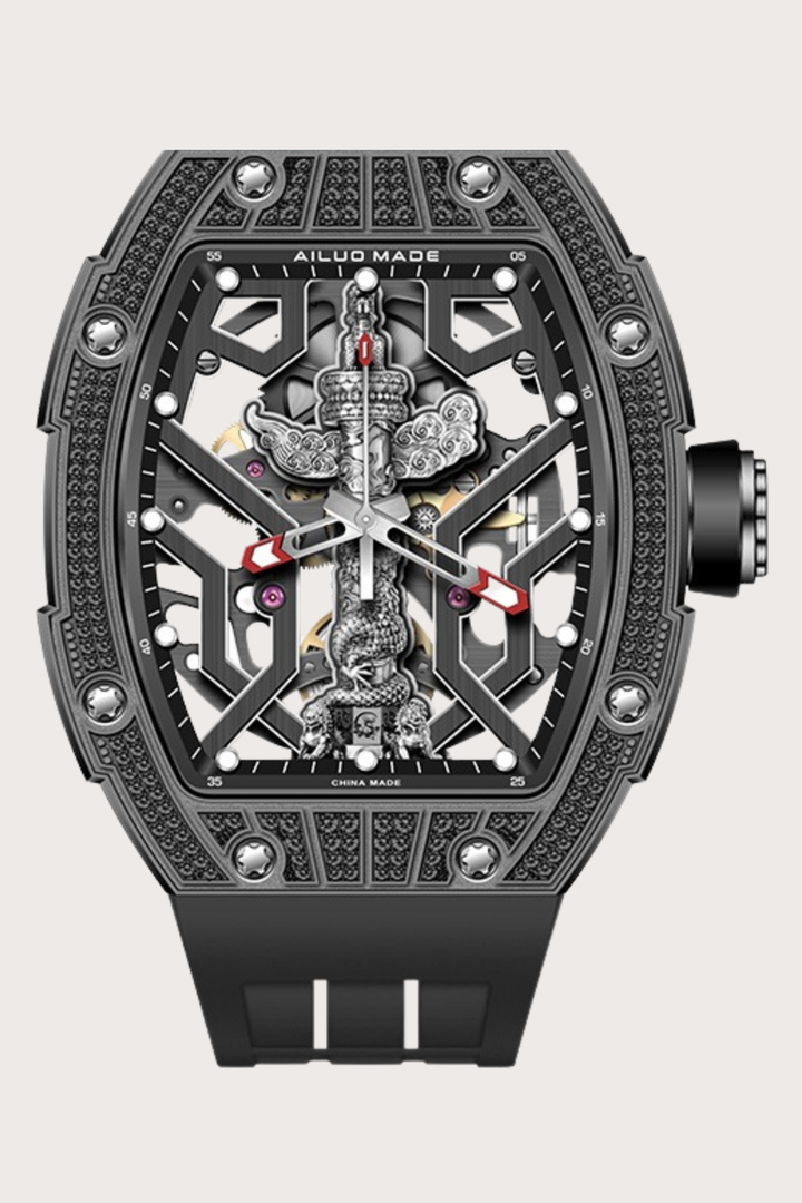 Ailuo Made 6629 Series Frosted Luminous Automatic Fully Black Mechanical Men's Watch
