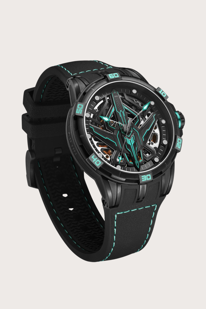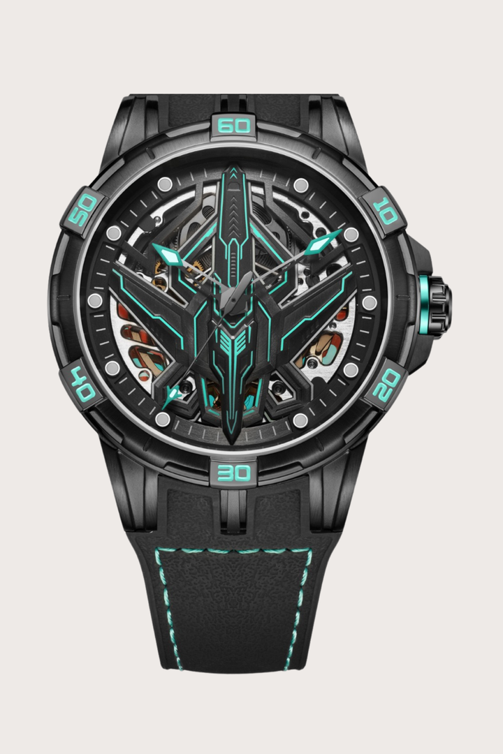 Luxury G6635 Series Aviation Design Automatic Mechanical Watch in Black and Cyan | Ailuo Made Edition