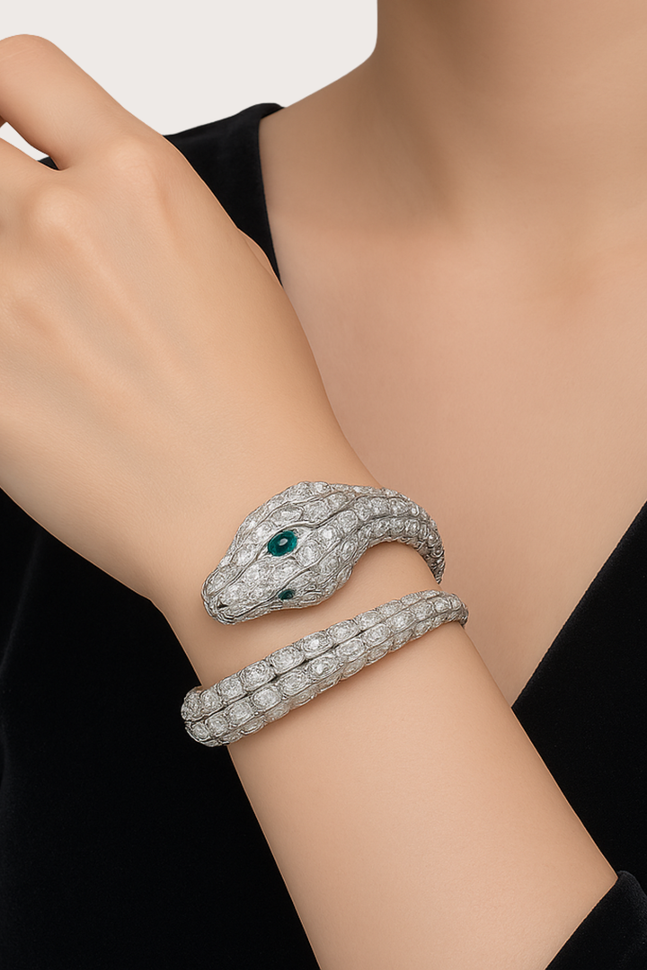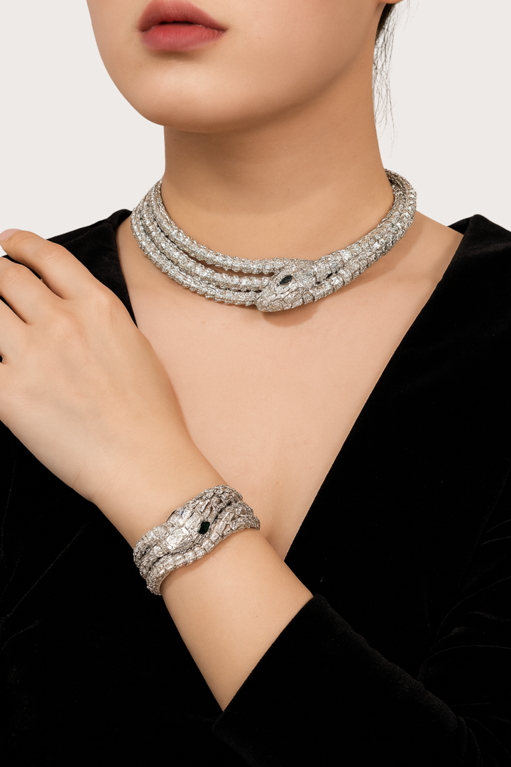 Luxurious Serpent-inspired Shape Silver Necklace and Bracelet Set