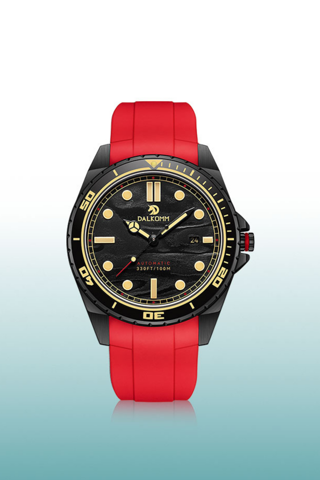 King Kong Series High-end Men's Automatic Black Analog with Gold-accented Tick Detailing Striking Red Strap Diver Watch