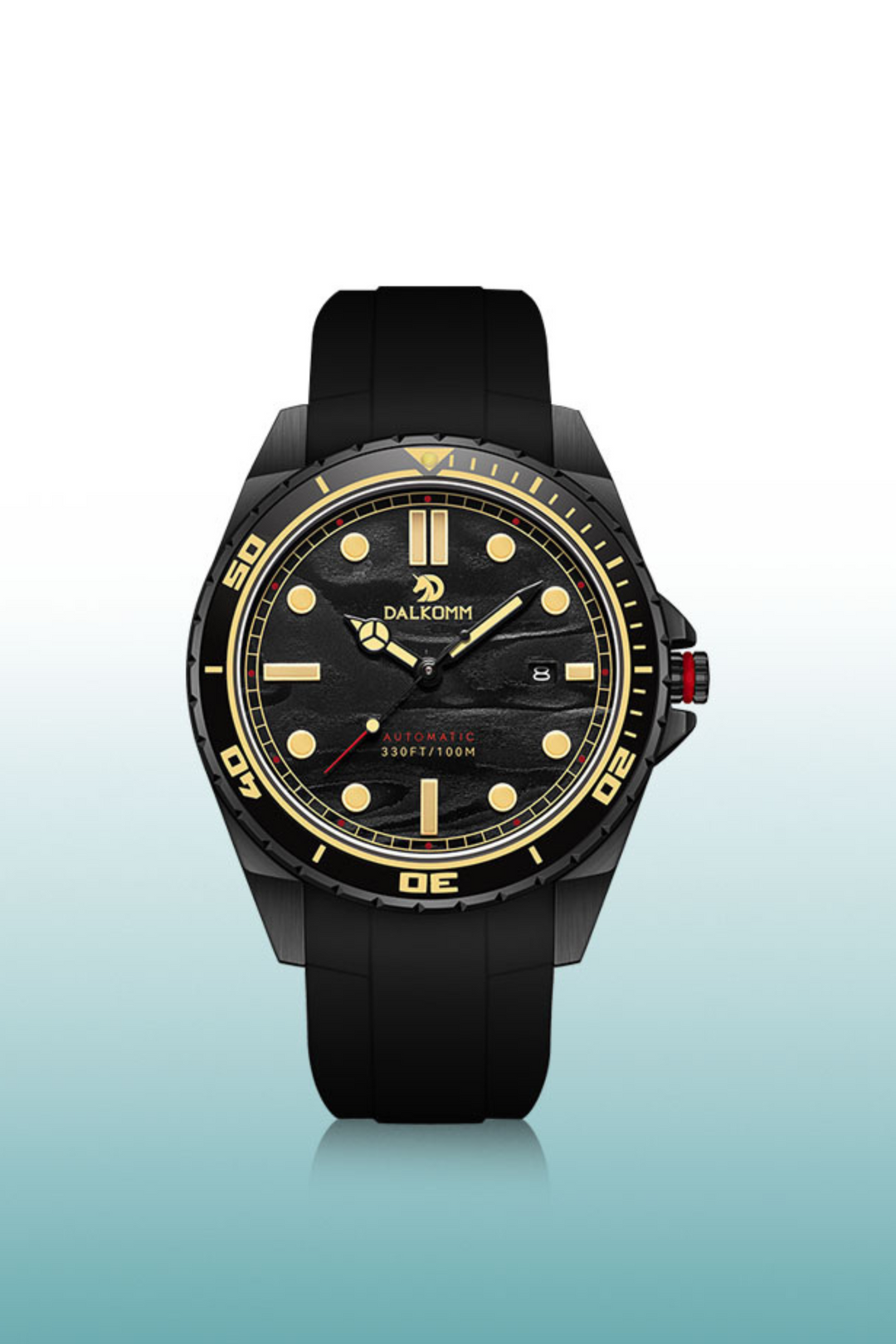 King Kong Series High-end Men's Automatic Black Analog with Gold-accented Tick Detailing Striking Black Strap Diver Watch