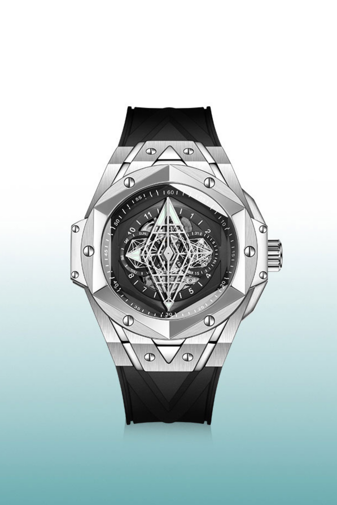 Stylish Sport Tattoo Series Silver Analog Mechanical Movement Watch