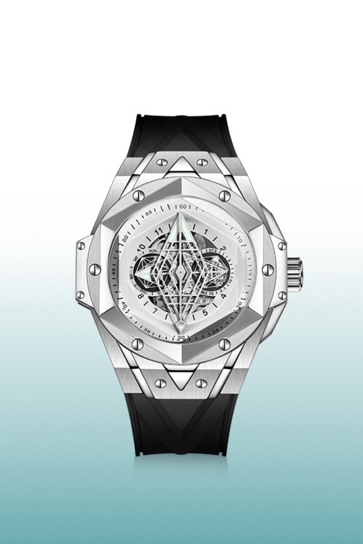 Stylish Sport Tattoo Series Silver Analog Mechanical Movement Watch