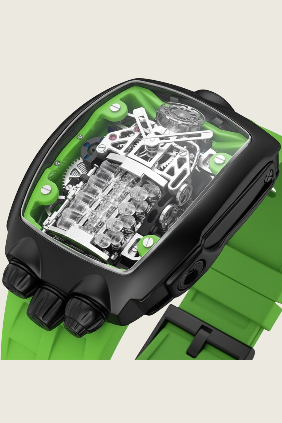 Viper Engine Neon Green with Black Dial | Tonneau Skeleton Automatic Engine Edition