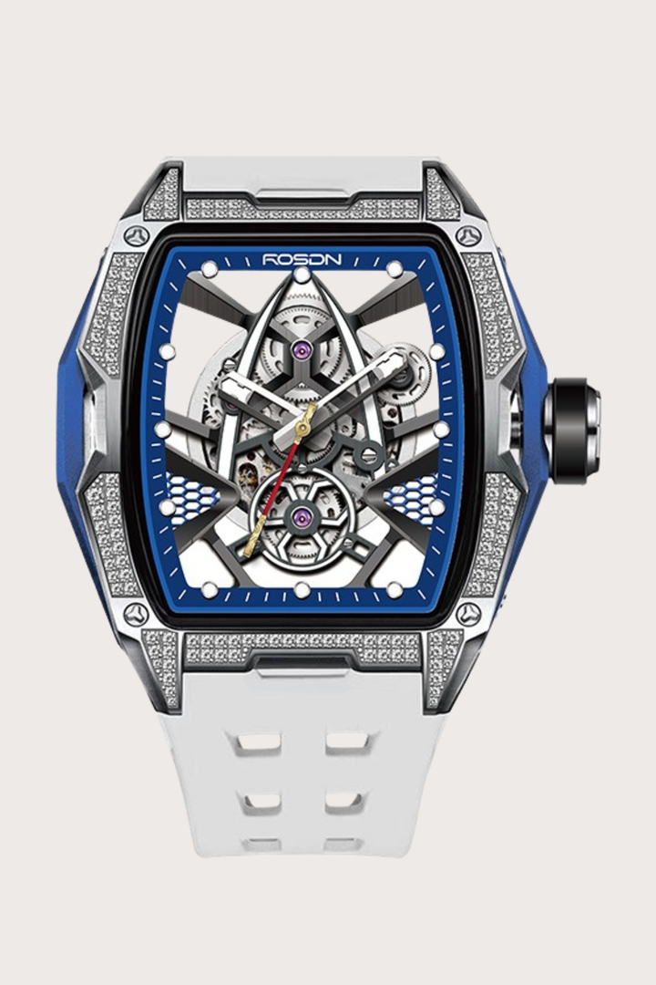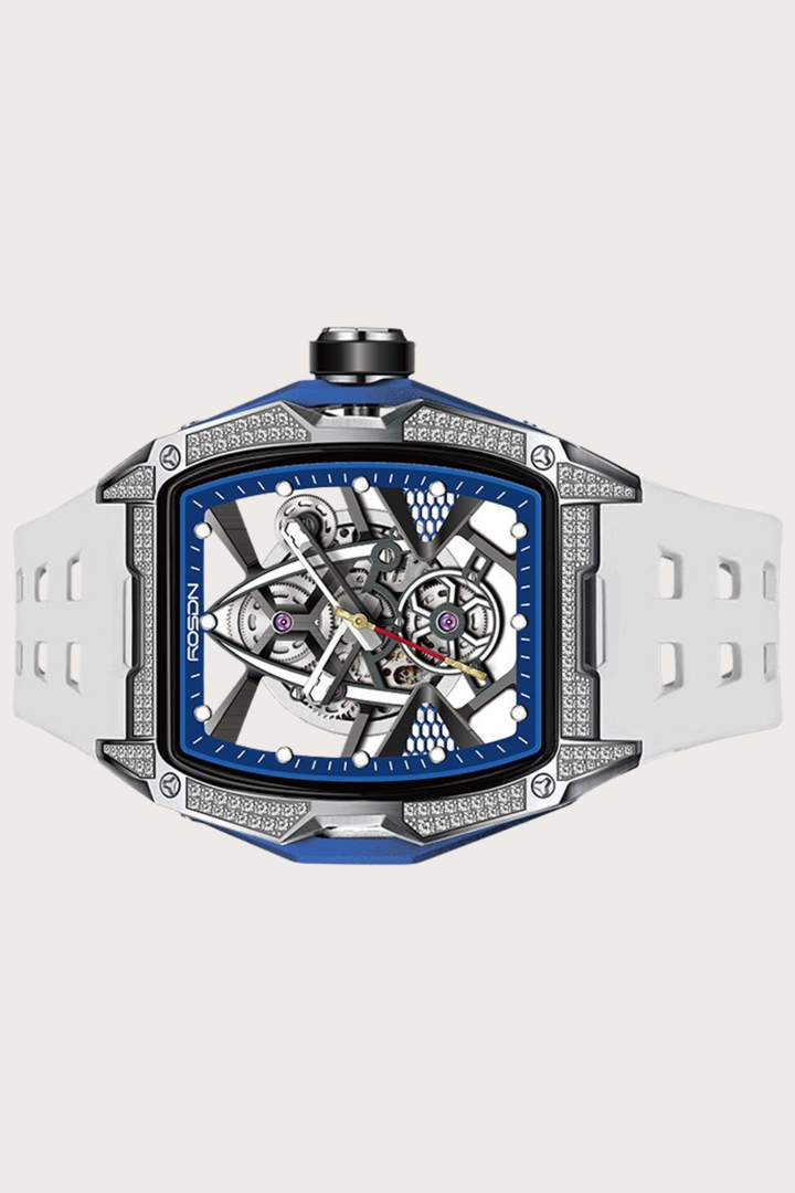 Luxury Frosted White G2710 Series High Quality Barrel Shape Silicone Band Automatic Mechanical ROSDN Watch