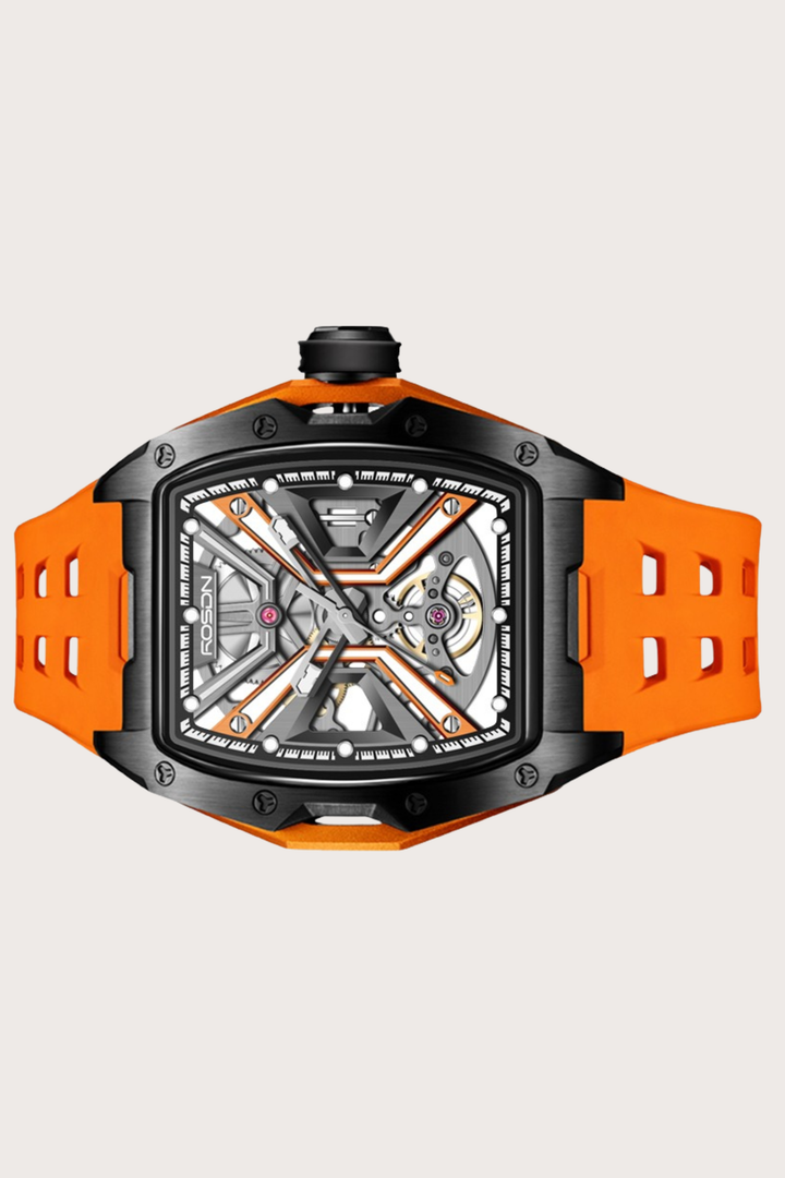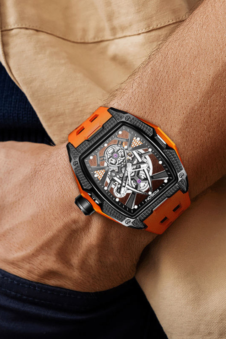 Luxury Orange G2710 Series High Quality Barrel Shape Silicone Band Automatic Mechanical ROSDN Watch