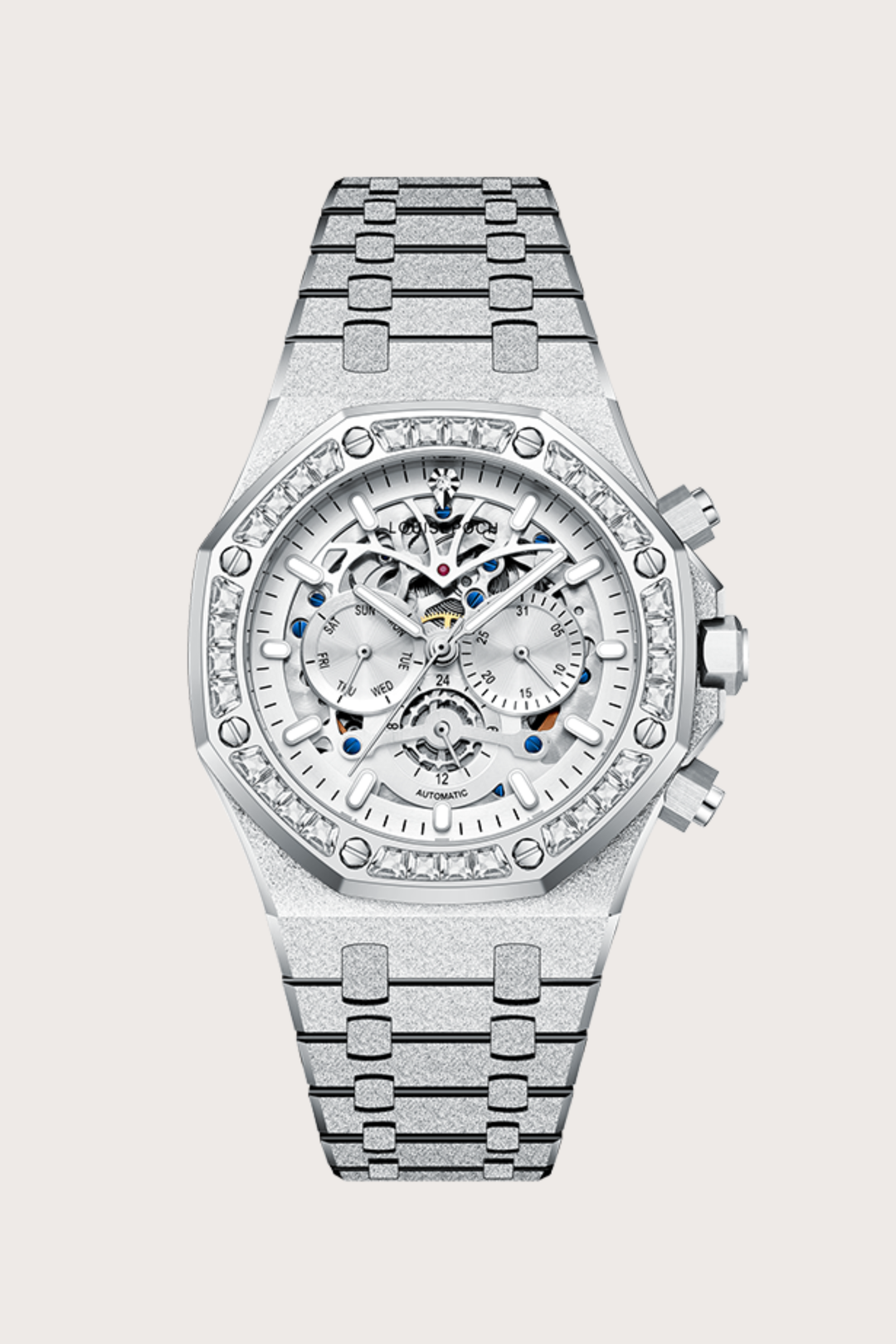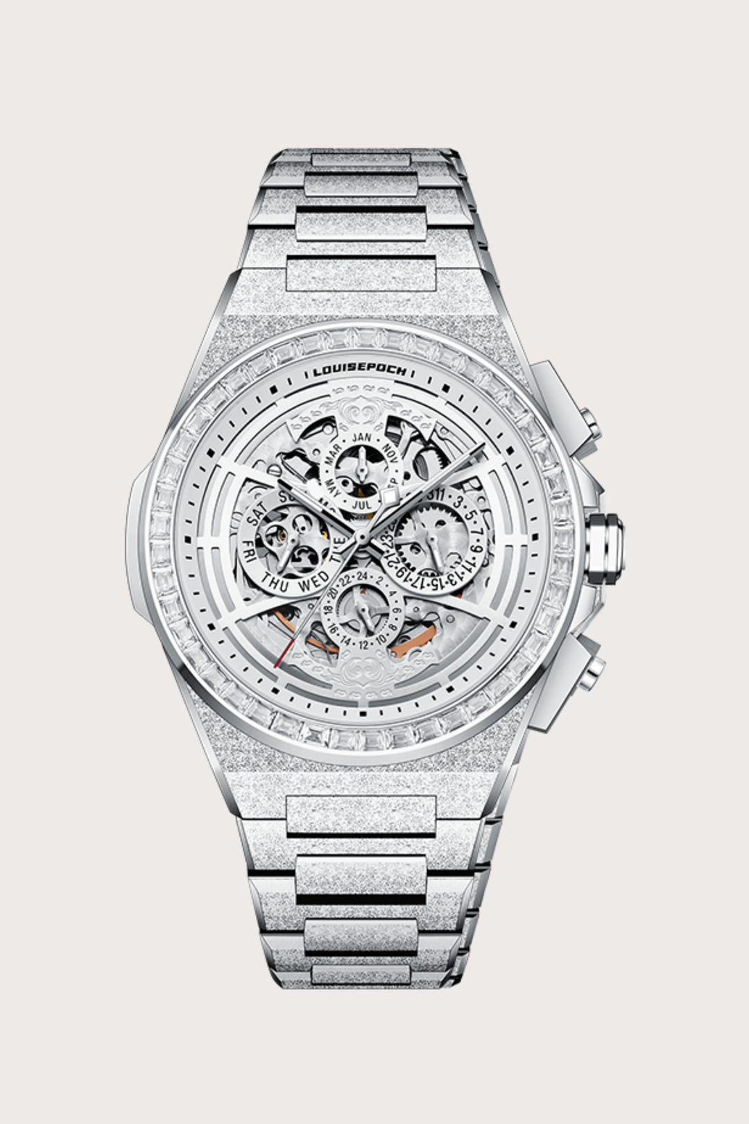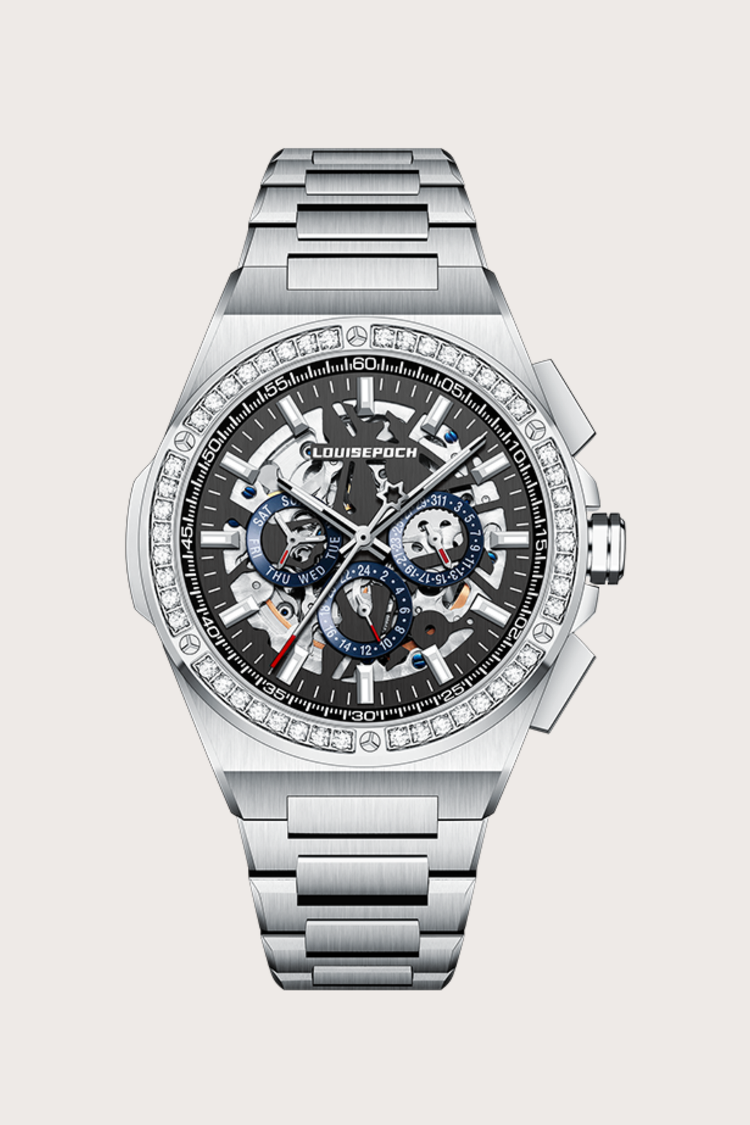 Men's Louisepoch LA2198 Series Fully Diamond Skeleton Qtz Multifunction Round Dial Watch