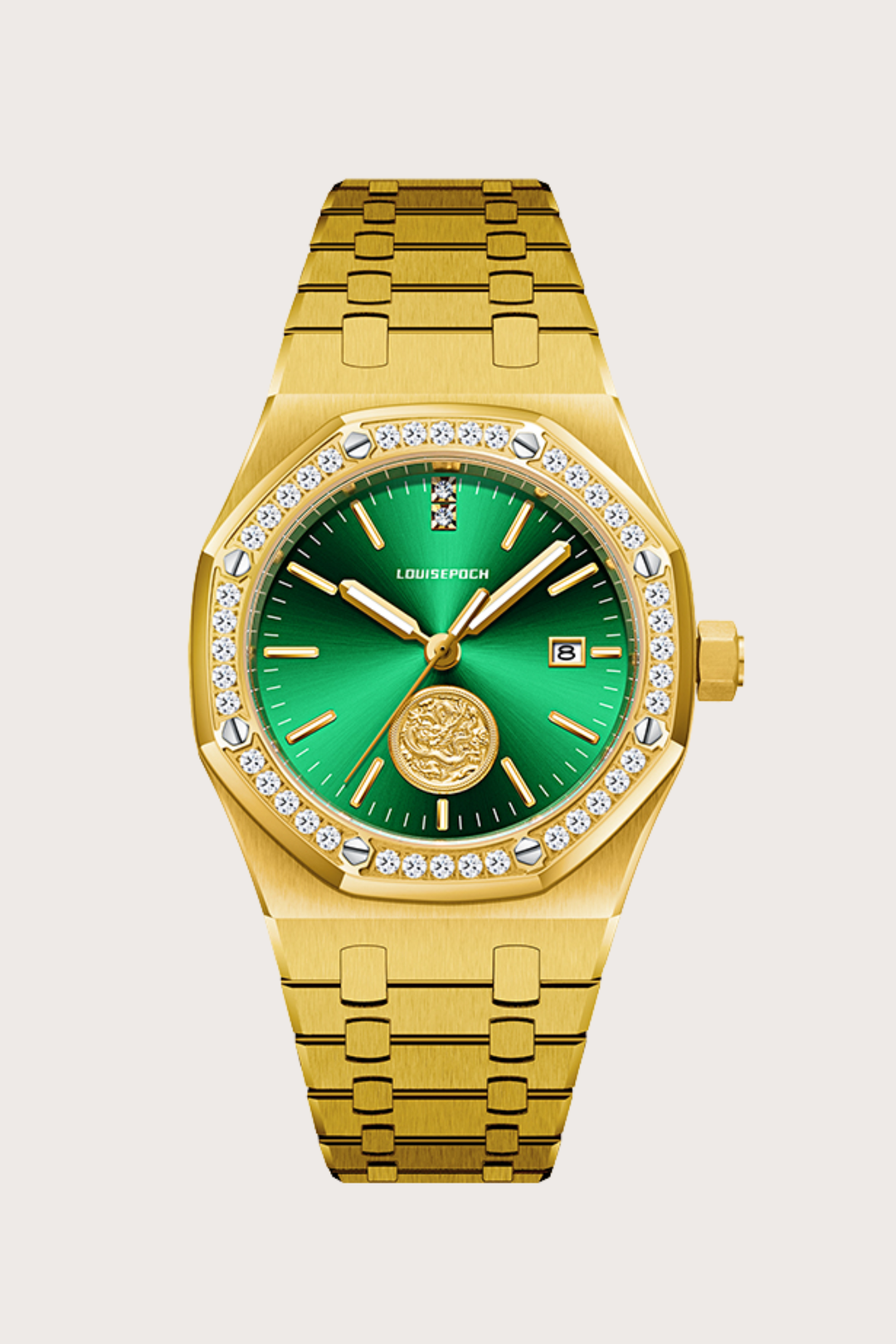 Men's Louisepoch La7806 Series Opulent Double Diamond Bezel Gold Dragon Motif Watch