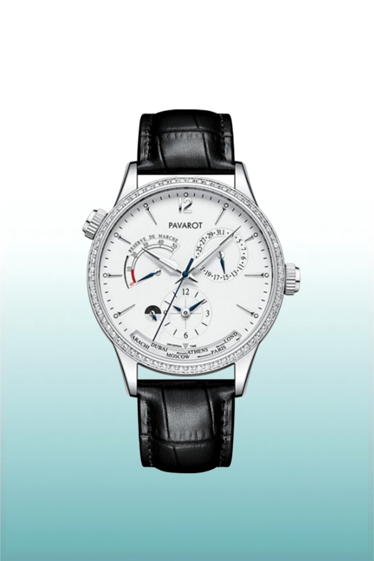 Men's Pavarot PA1428 Series Automatic Machine Stainless Steel Sapphire Waterproof Leather Black Watch